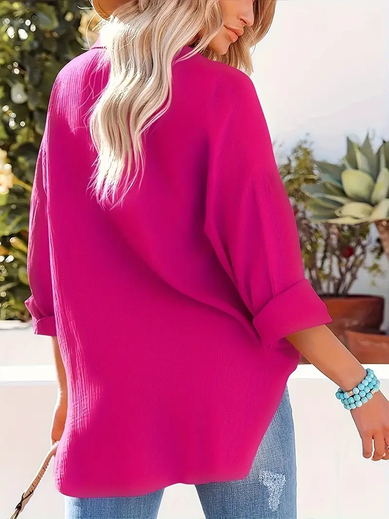 Cette chemise fluide à épaules tombantes est l’incarnation du confort chic.
